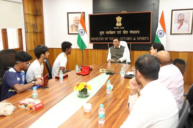 Union Minister for Youth Affairs & Sports and Labour & Employment Dr. Mansukh Mandaviya on Wednesday felicitated India’s medal-winning contingent from the 73rd Inline Speed Skating World Championships 2025, held in Beidaihe, China from September 13–21.
