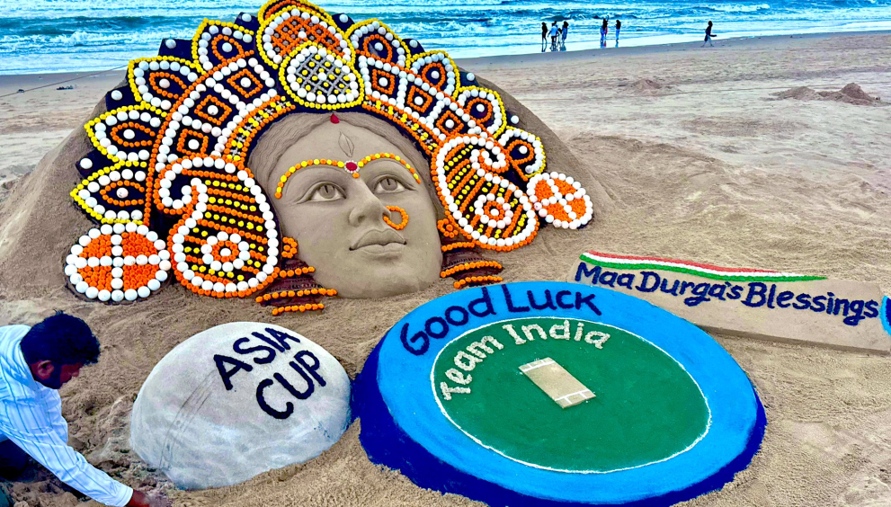Pattnaik, who has won over 65 international sand art championships, is known for using his art to promote awareness on issues like climate change, plastic pollution, global peace, and health. His latest masterpiece not only highlights festive devotion but also serves as a heartfelt tribute to Team India ahead of their crucial clash in the Asia Cup final.