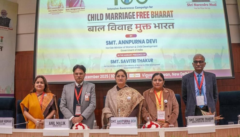 The Ministry of Women and Child Development on Thursday launched a 100-Day Intensive Awareness Campaign for a Child Marriage Free Bharat, marking the first anniversary of the Bal Vivah Mukt Bharat Abhiyan. The event, held at Vigyan Bhawan, was inaugurated by Union WCD Minister Smt. Annpurna Devi, in the presence of Minister of State Smt. Savitri Thakur.